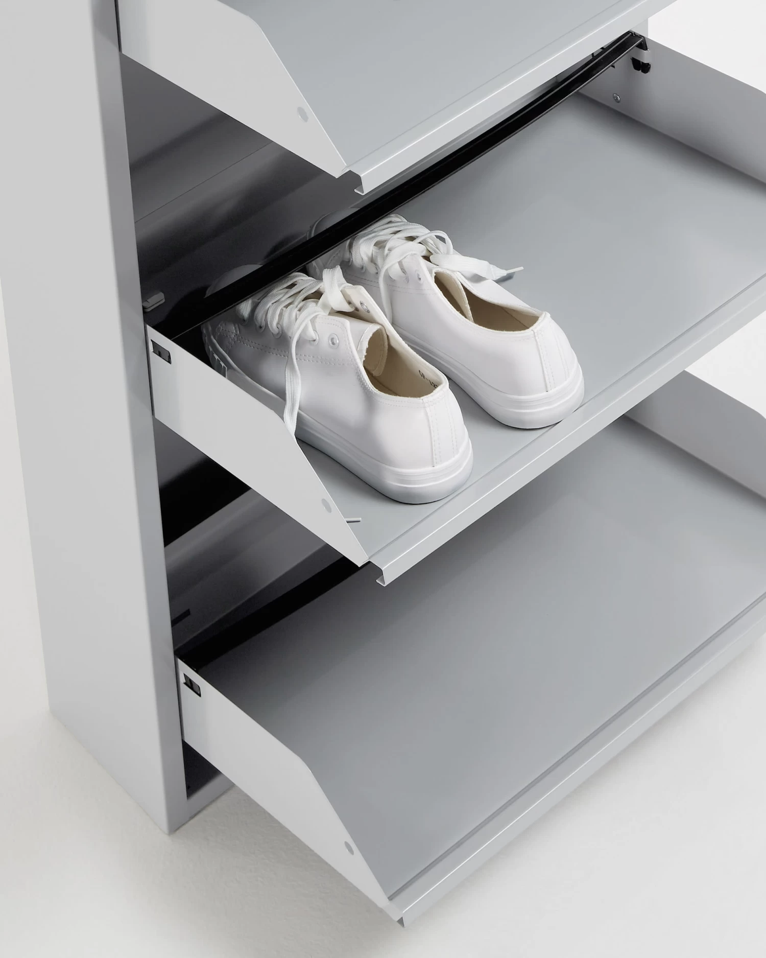 Made entirely from metal, this shoe rack with various compartments is the perfect storage solution for all your shoes. All this and a design with pure lines and elegant finishes.