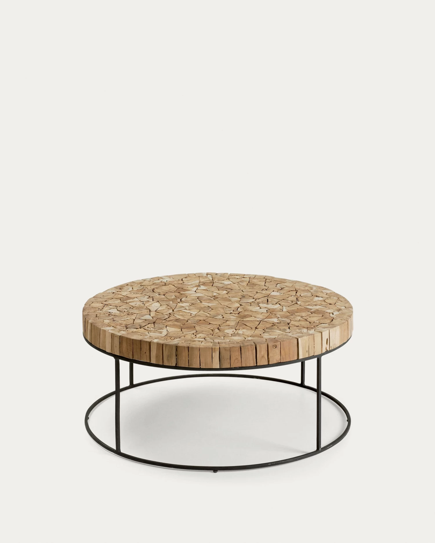 Coffee table in teak mosaics. Iron structure. This item has been made of recycled natural materials and therefore can be subject to slight variations.