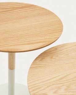 Watse Set Of 2 Side Tables In Oak Wood Veneer And Matte White Metal à 40 Cm/à 48 Cm | Kave Home