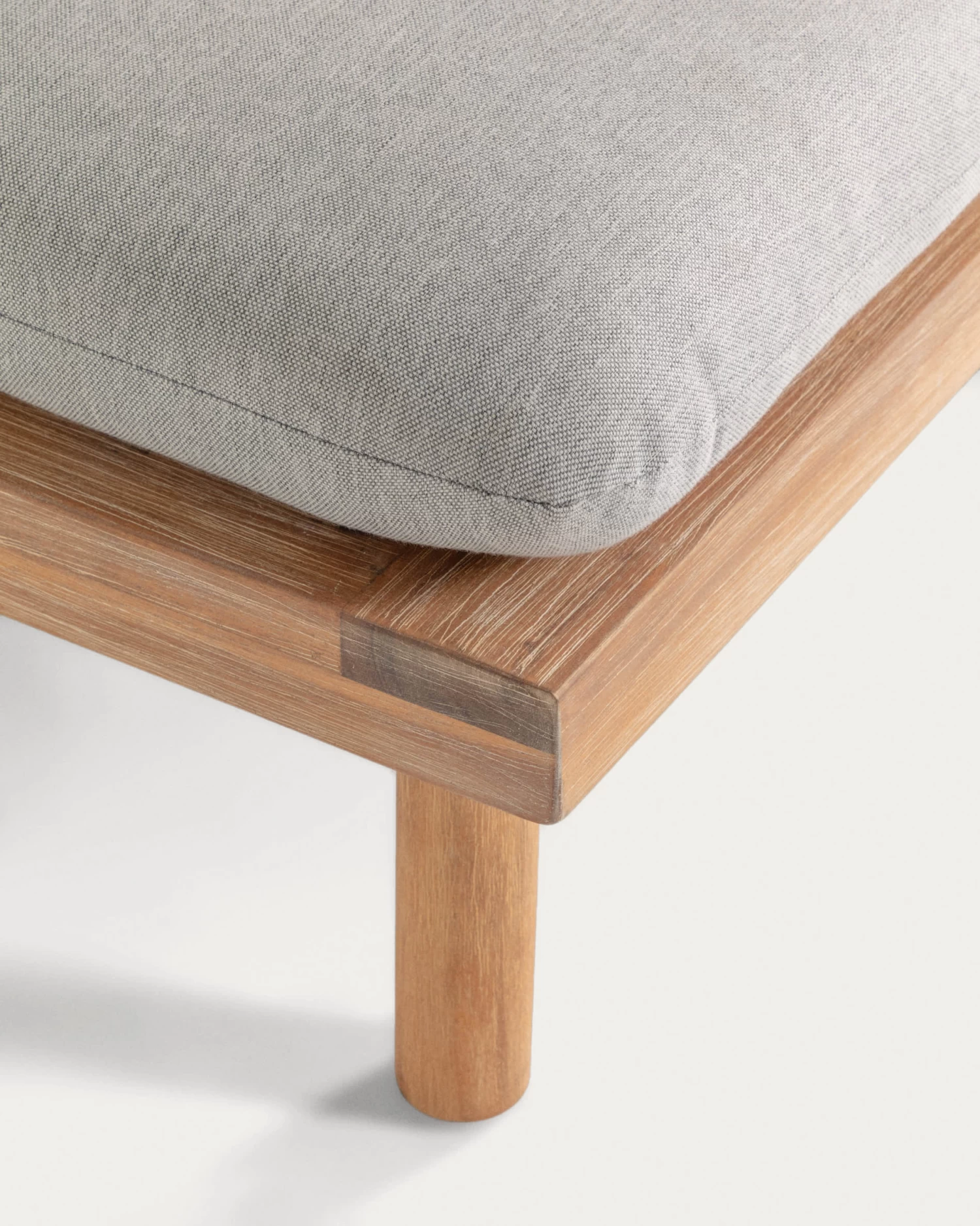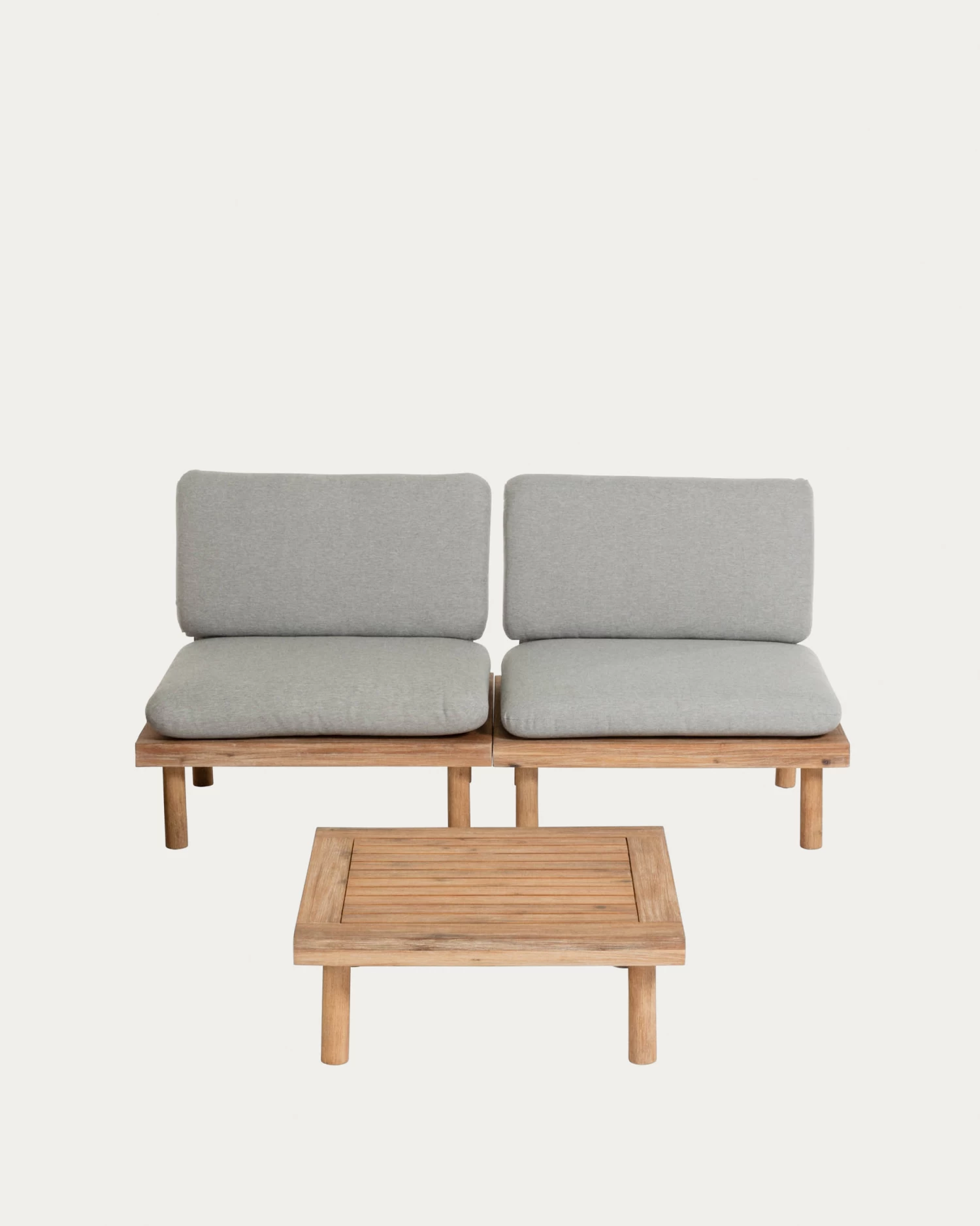 The Viridis set is formed by 2 acacia wood armchairs and 1 table with removable and water-resistant cushions. Ideal to enjoy outdoors, as the wood has been treated to withstand UV rays and has a long-lasting PU lacquer. Remember to look after the wood with our specialised products. With your Viridis set, you can create different combinations to adapt to any room. You decide. Four armchairs or a jumbo sofa? Up to you!