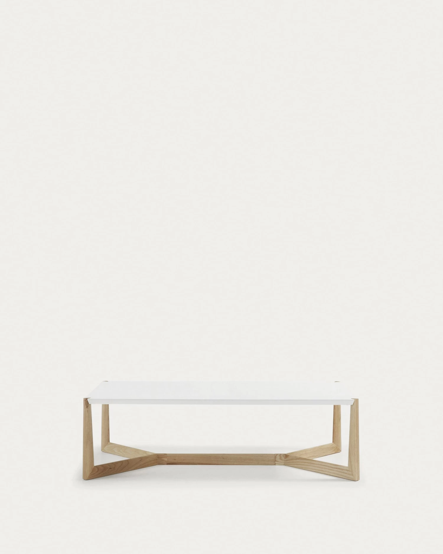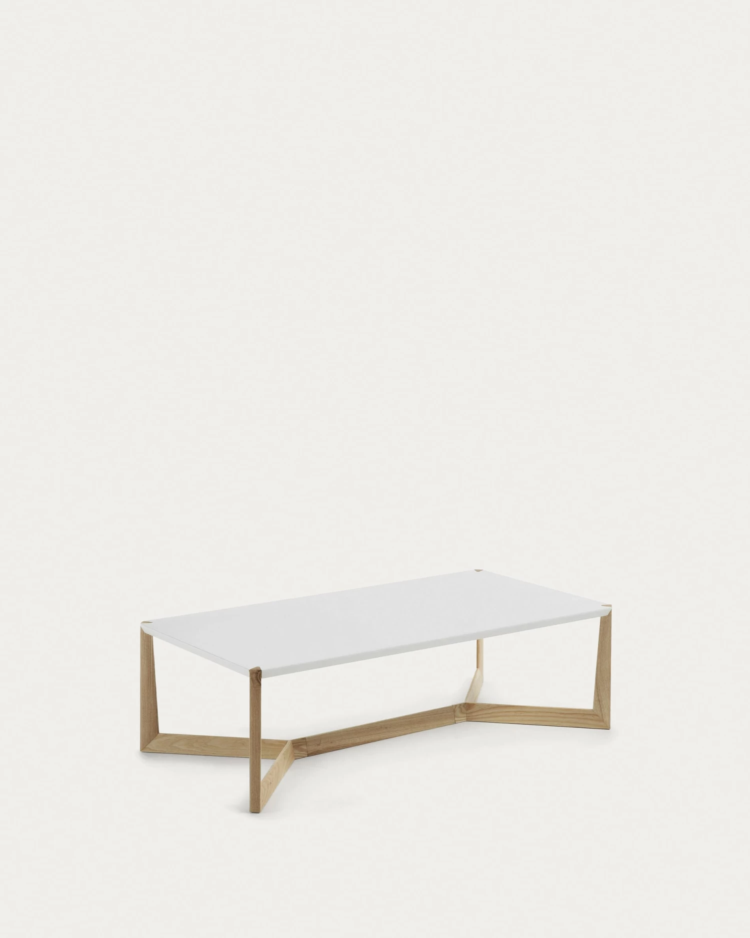 Coffee table with wooden ash structure and matt lacquered fiberboard top.