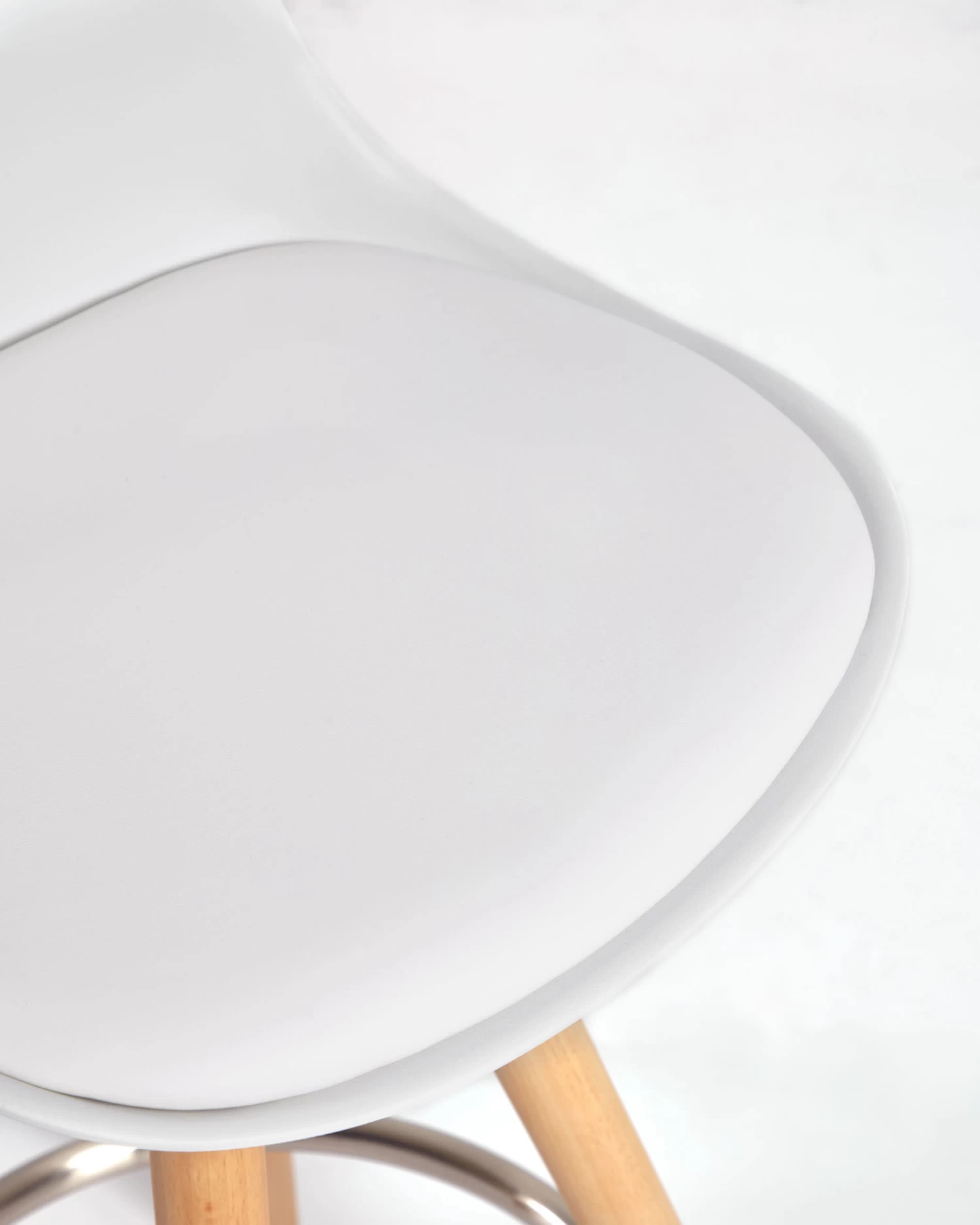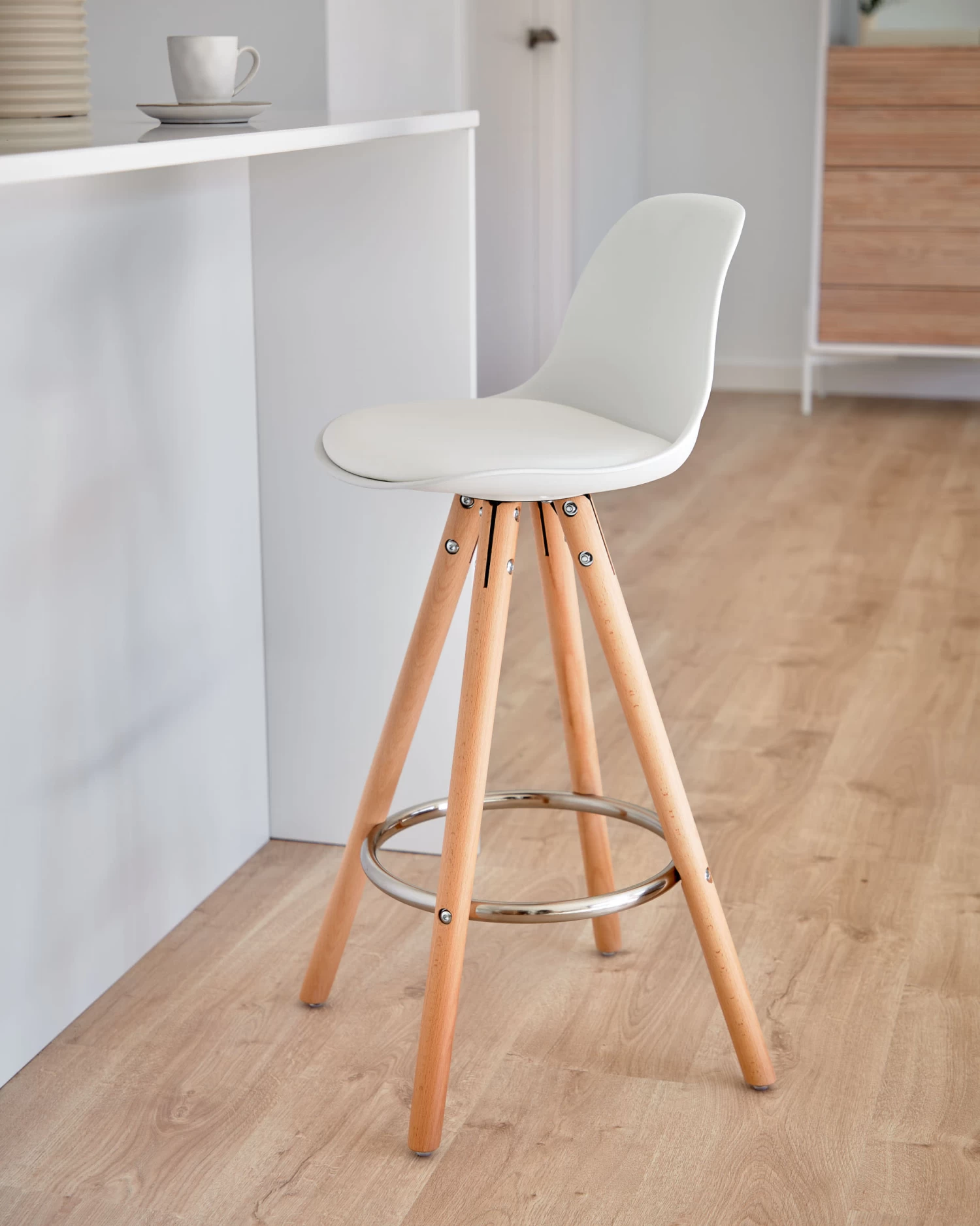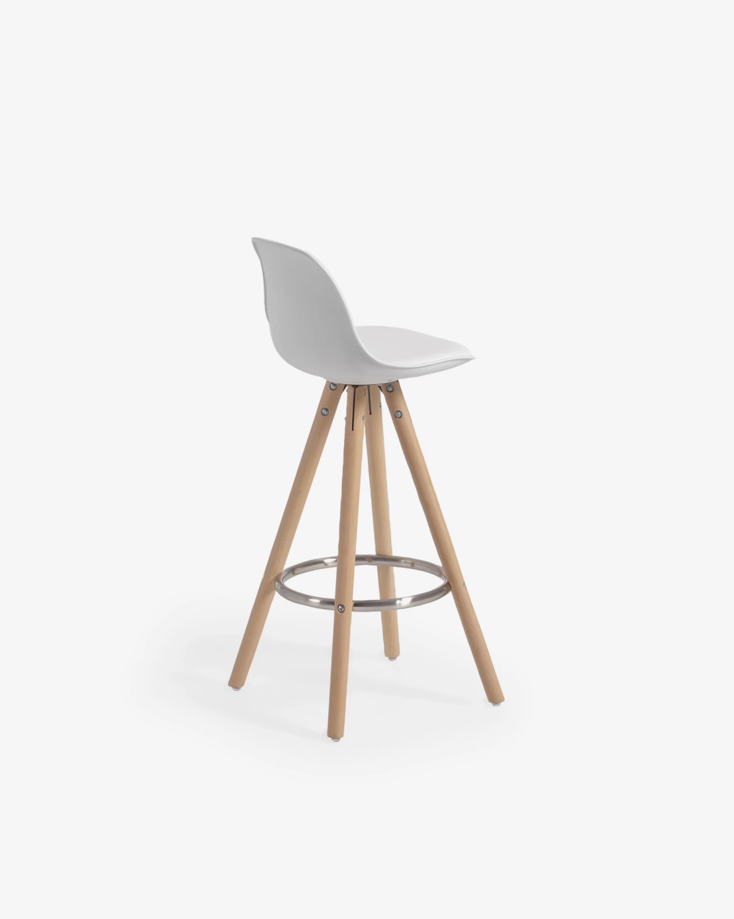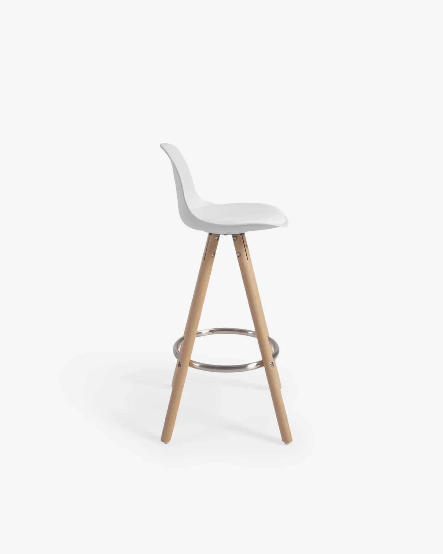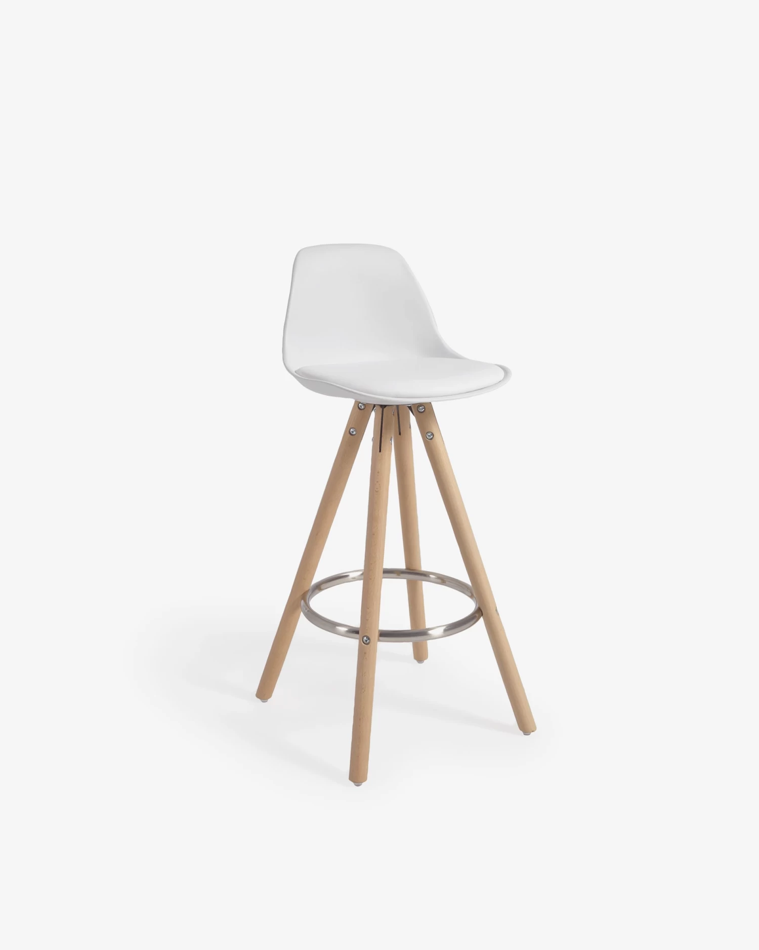 This Slad stool, with a white polypropylene seat and tripod-shaped natural beech wood legs, has the best finishes. On the one hand, its back has a slightly curved shape for greater comfort, and also has a padded seat. On the other hand, it has a metal ring-shaped footrest. Your time with the Slad stool will last for life.