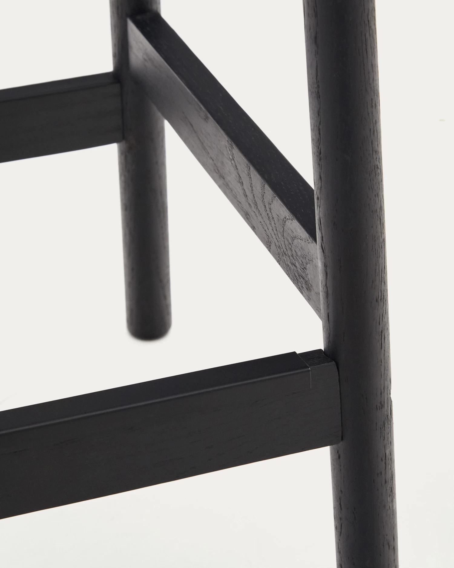 - Solid oak wood structure in a black finish, with unique shades and veins running through each piece.