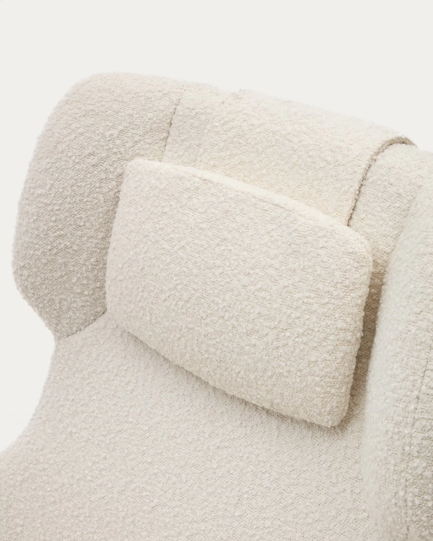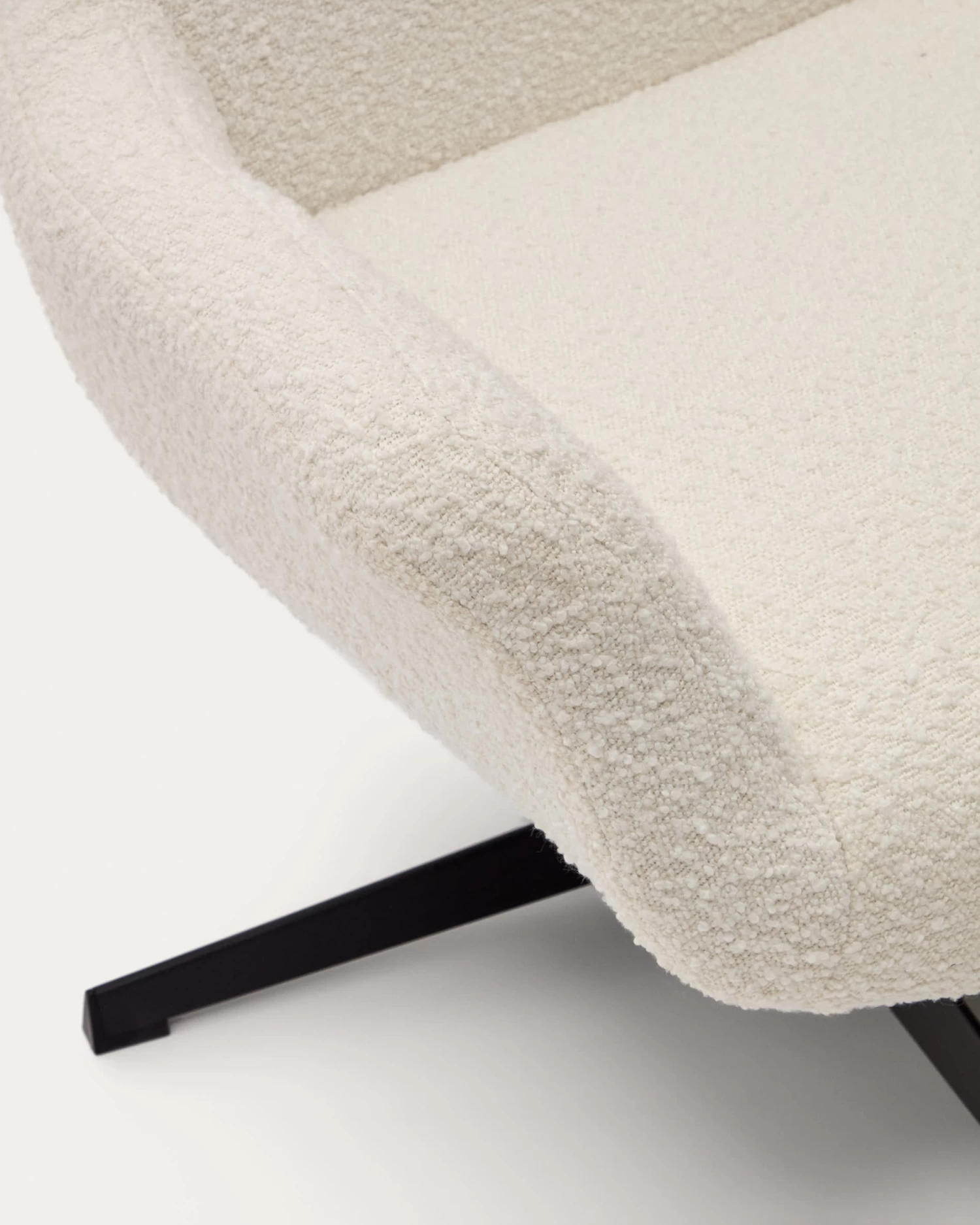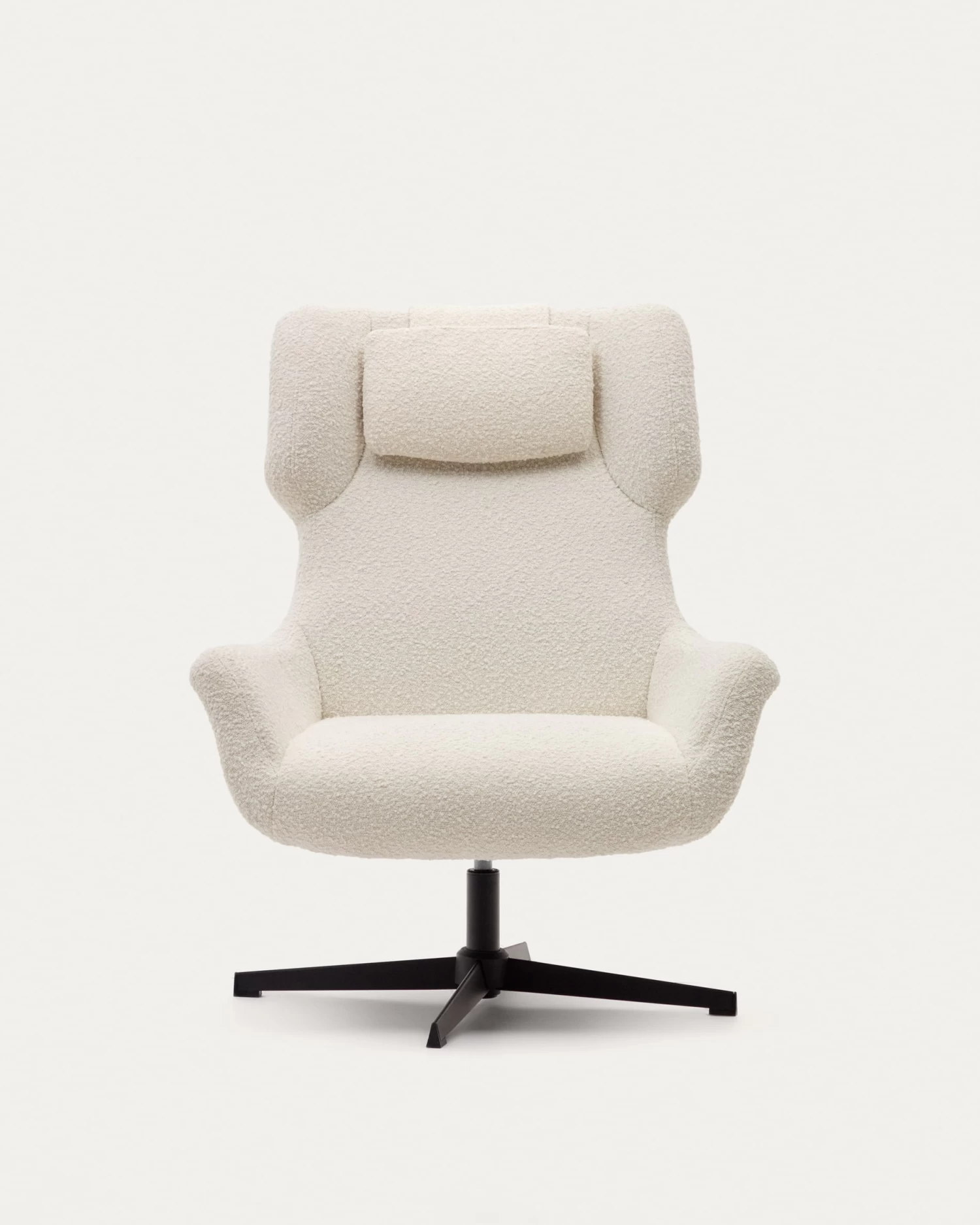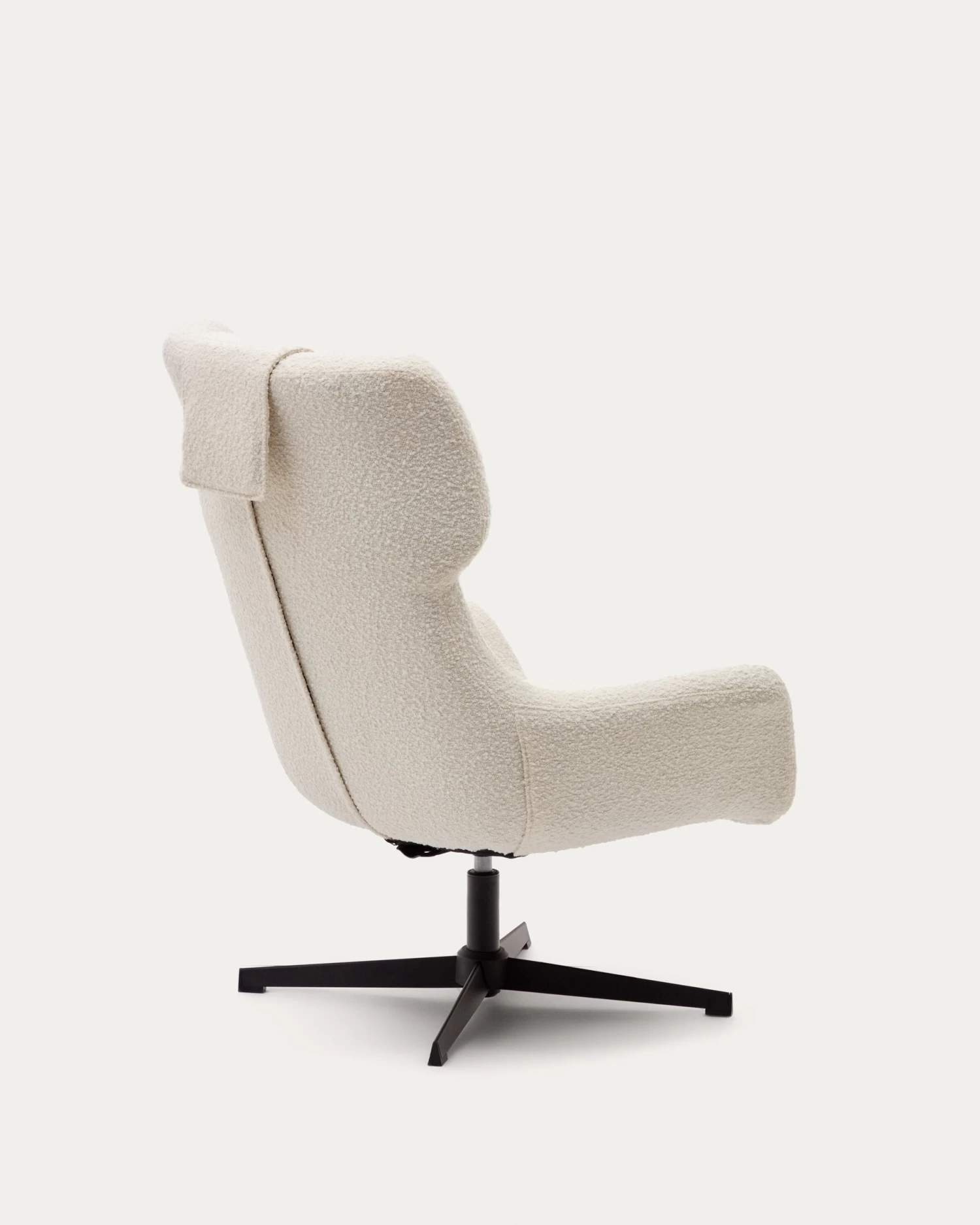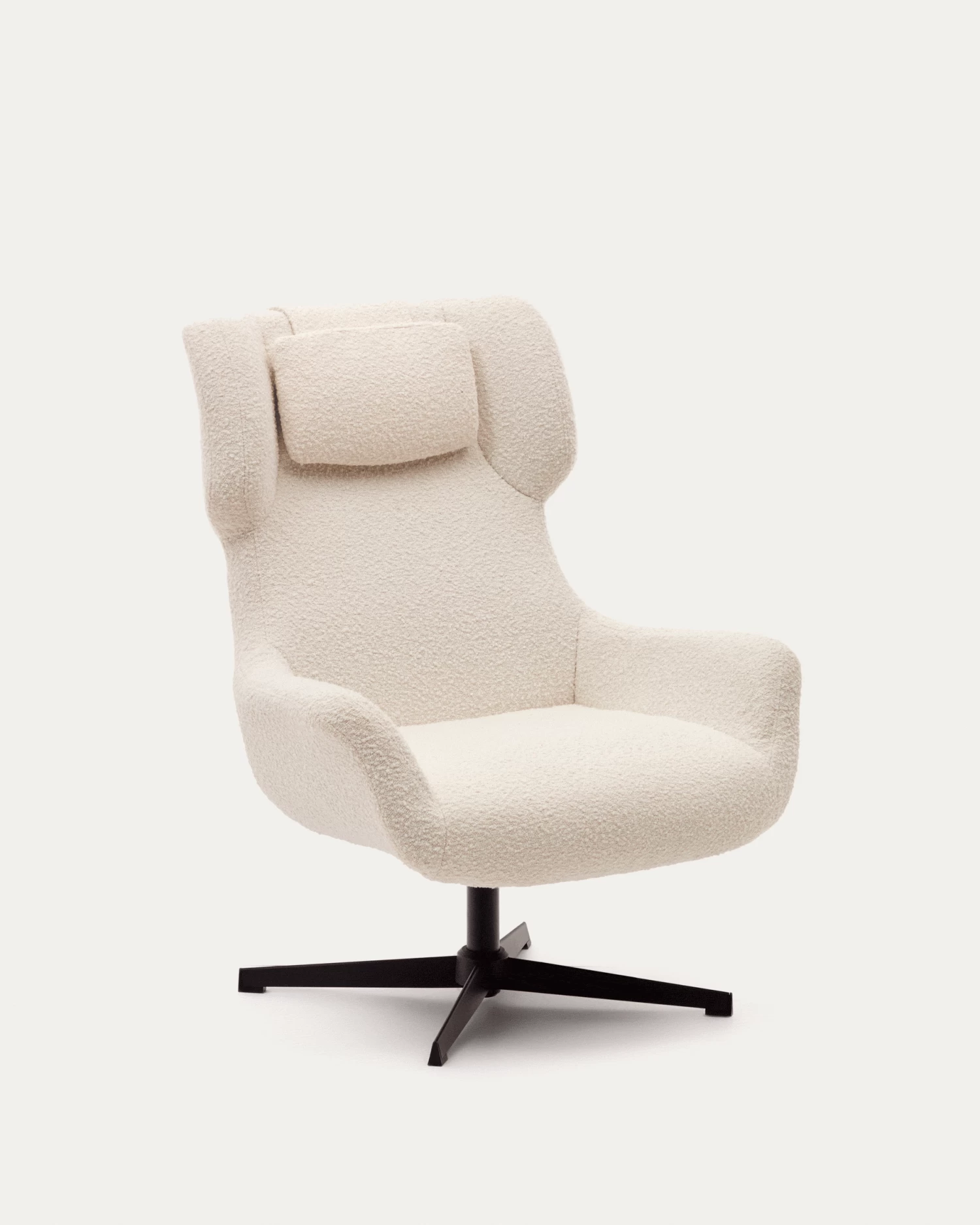 - Swivel armchair with arms upholstered in white shearling-effect fabric.